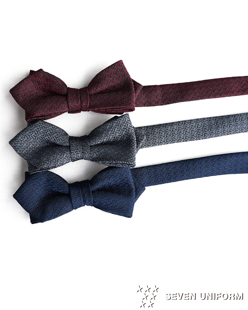 リボンの大きさ11.5×5.5㎝、コンパクトなので遊び心のあるシーンでのご使用でもお勧めの蝶ネクタイです。一見無地に見えるネクタイですが、ジャカード織りにより複雑な柄と色の濃淡を使用し、奥深い表情を持つ高級感漂うデザイン。ポリエステル100%。