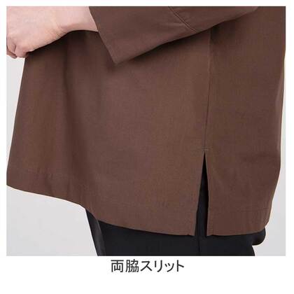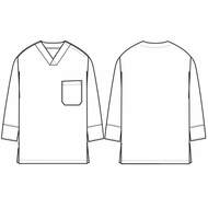 八分袖ノーカラーシャツ(袖口アンダーカバー付)