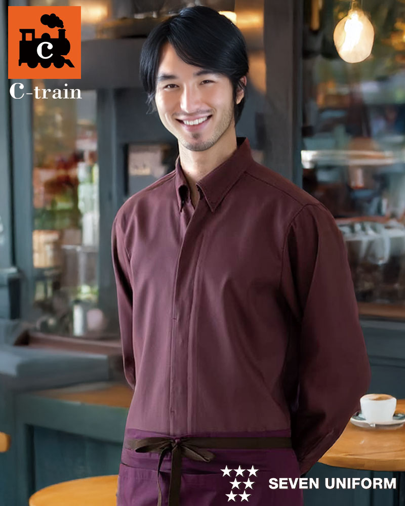 厨房でもホールでもご利用頂けるPremiumなシャツコート。ポケットなしのドレッシーなスタイルで、フロントもボタンが隠れる比翼スタイル、衿の形を整える衿裏ボタン付き。織物生地の《スティーリーコットン二重織》は、①耐久性②色落ち③縮みを克服した素材。超長綿を贅沢に使用、繊維の特性や、綿布の織り方、染め方を改良することで、丈夫で長持ち、強さと優しさを実現しています。制菌・制菌・制電・ストレッチ素材。