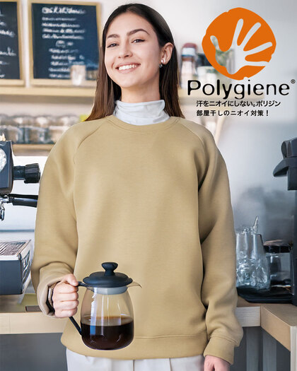:ドライストレッチクルーネックトレーナー(ポリジン加工)