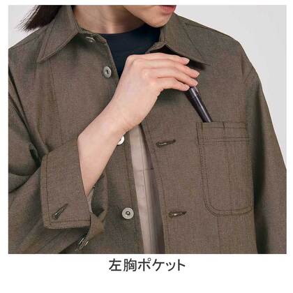 長く使っても経年劣化や色落ちのない、麻の様なドライタッチの高級感あるサービスコートです。新しいコンセプトの接客スタイルで印象に残る商品です、綾織素材の《麻調デニム》は、空気紡績という方法で糸を作ることにより、麻のような風合いと快適なドライタッチを実現した肌離れの良い素材。ポリエステル65%、綿35%。ストレッチ・制電素材。