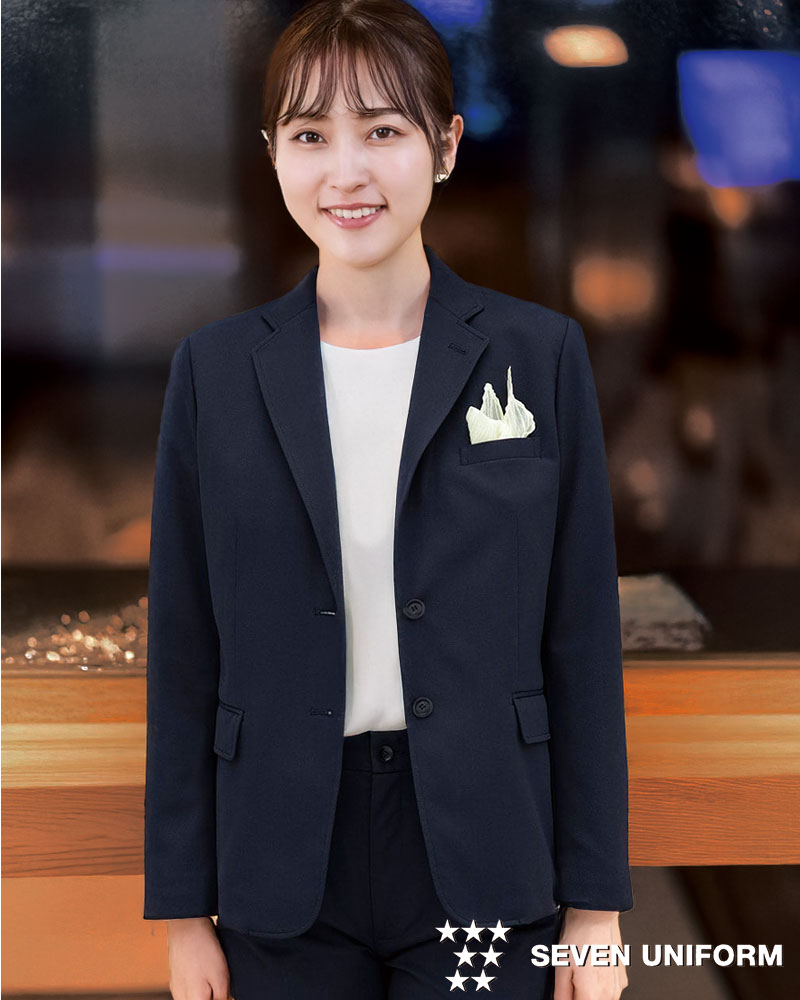 とにかく着心地が良く、仕事がしやすいがコンセプトの女性用ジャケット。梳毛スーツのような高級感と、自然に体にフィットするトリコット素材、ホテルやレストランで求められる軽さや通気性、イージーケアなど多くの点で進化した次世代ユニフォームです。背抜き仕立て、左右内ポケット付き。ニット素材の《トリコット》は、伸縮性と形状安定性、ループ構造による通気性にも優れた素材。ポリエステル100%。