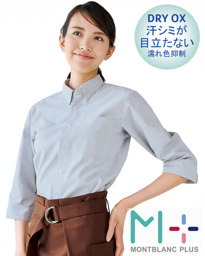 脇の汗染み防止Oxford7分袖シャツ