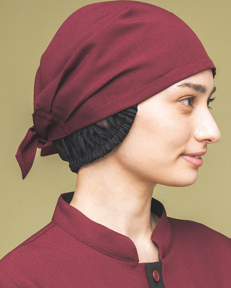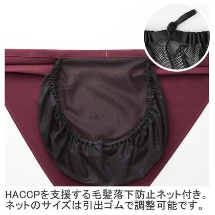 バンダナとしても三角巾としてもご利用頂ける、ネット付きバンダナ帽子です。毛髪混入防止を意識したHACCP仕様で、使用している生地は塩素系の漂白剤に強い防脱色加工がされた優れモノです♪