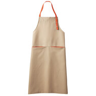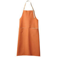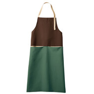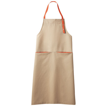 軽快な首掛けタイプ、2色の鮮やかな色使いとビンテージ感のあるお洒落生地を使用したビブエプロンです♪ 左胸/両腰ポケット、肩口サイズ調整。織物素材の《オニベジビンテージウェザー》は、細やかなシワ感のあるビンテージ加工を施したウェザー素材。植物由来の天然色素で染め上げ、光沢を抑えたマットな質感も特長です。ポリエステル100%。