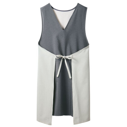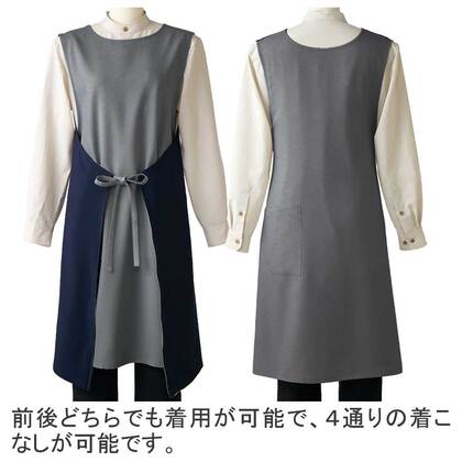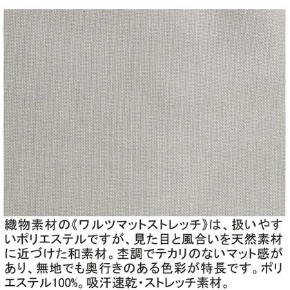 奥行きのある杢調素材に、意匠を凝らしたデザインのエプロンです。前後で形状の異なる衿デザイン、腰回りのラップ式合わせを前後で結べる珍しいタイプ。織物素材の《ワルツマットストレッチ》は、扱いやすいポリエステルですが、見た目と風合いを天然素材に近づけた和素材。杢調でテカリのないマット感があり、無地でも奥行きのある色彩が特長です。ポリエステル100%。吸汗速乾・ストレッチ素材。