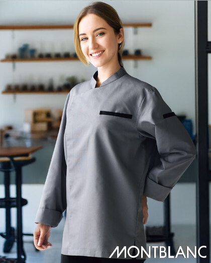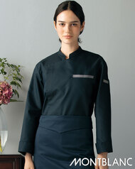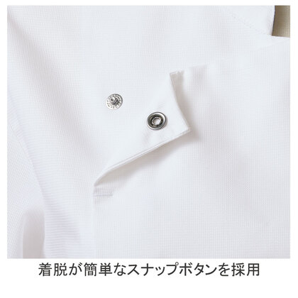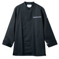 校倉構造の優れた通気性で、涼しく軽い、快適コックコートです。低めのスタンドカラーにデザイン性のあるアクセントカラーで、機能性とファッション性のあるお洒落なコックコートです。左胸ポケット、左袖ペンポケット、着脱が簡単なスナップボタン仕様。織物素材の《アゼッククール》は、厨房の厚さ対策に特化した校倉構造の軽量&通気性素材。動くたびに空気が流れる生地構造と、吸汗速乾の異形断面糸によるCOOLMAX仕様。