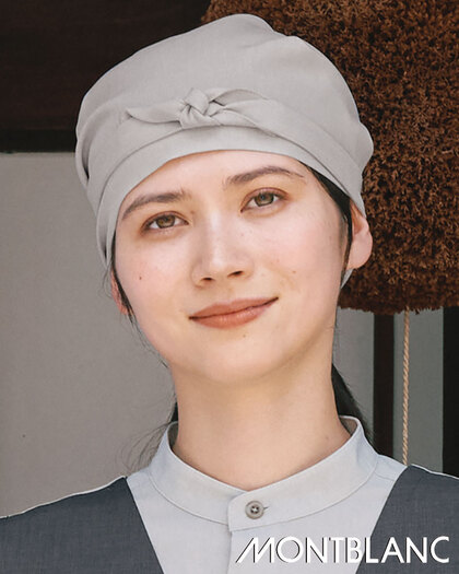 前結び、後ろ結び、双方のアレンジができるバンダナです。織物素材の《ワルツマットストレッチ》は、扱いやすいポリエステルですが、見た目と風合いを天然素材に近づけた和素材。杢調でテカリのないマット感があり、無地でも奥行きのある色彩が特長です。ポリエステル100%。