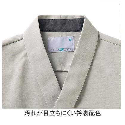 作務衣と調理衣を融合させた、上品で高級感のある和コートです。快適なストレッチと吸汗速乾で調理場、接客を問わずご利用頂けます。左胸ポケット、両脇スリット、はだけ防止の内ボタン付き。織物素材の《ワルツマットストレッチ》は、扱いやすいポリエステルですが、見た目と風合いを天然素材に近づけた和素材。杢調でテカリのないマット感があり、無地でも奥行きのある色彩が特長です。ポリエステル100%。