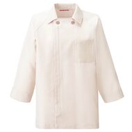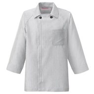 HACCP対応のお洒落な調理コートで、ホールや調理場を問わずご利用頂けます。 異物の混入に配慮して、驚くほど軽くて快適、機能性の充実したお勧め商品です。衿もとスナップボタン、フラップ付きファスナー、背中は蒸れを逃すベンチレーション、袖口は体毛落下防止のネット付き。織物生地の《二重織ピケ》は驚くほど軽量、抗菌加工がされた点タッチの畝織り素材。立体感のある生地でサラリとした爽やかな肌触りも特徴です。